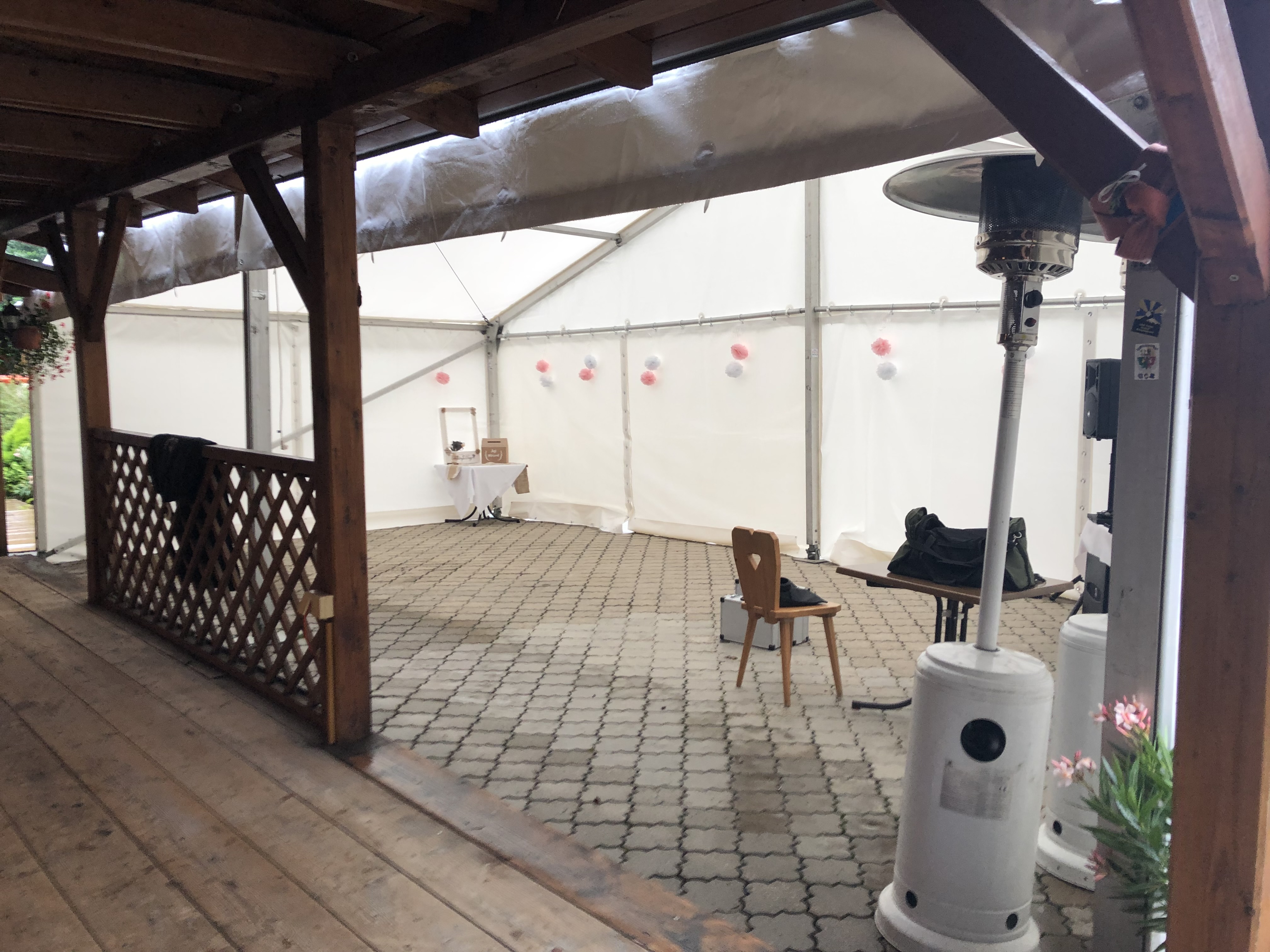 Areál je skvělou volbou pro svatby ve všech ročních obdobích bez ohledu na to, zda je sucho či nikoli. V případě deště lze totiž odpolední zábavu přesunout do vnitřního salonku, kam se pohodlně vejde až 40 osob. Na zahradě jsou k dispozici 2 zastřešené pergoly s výčepem a grilem, kde se může usadit až 120 osob.