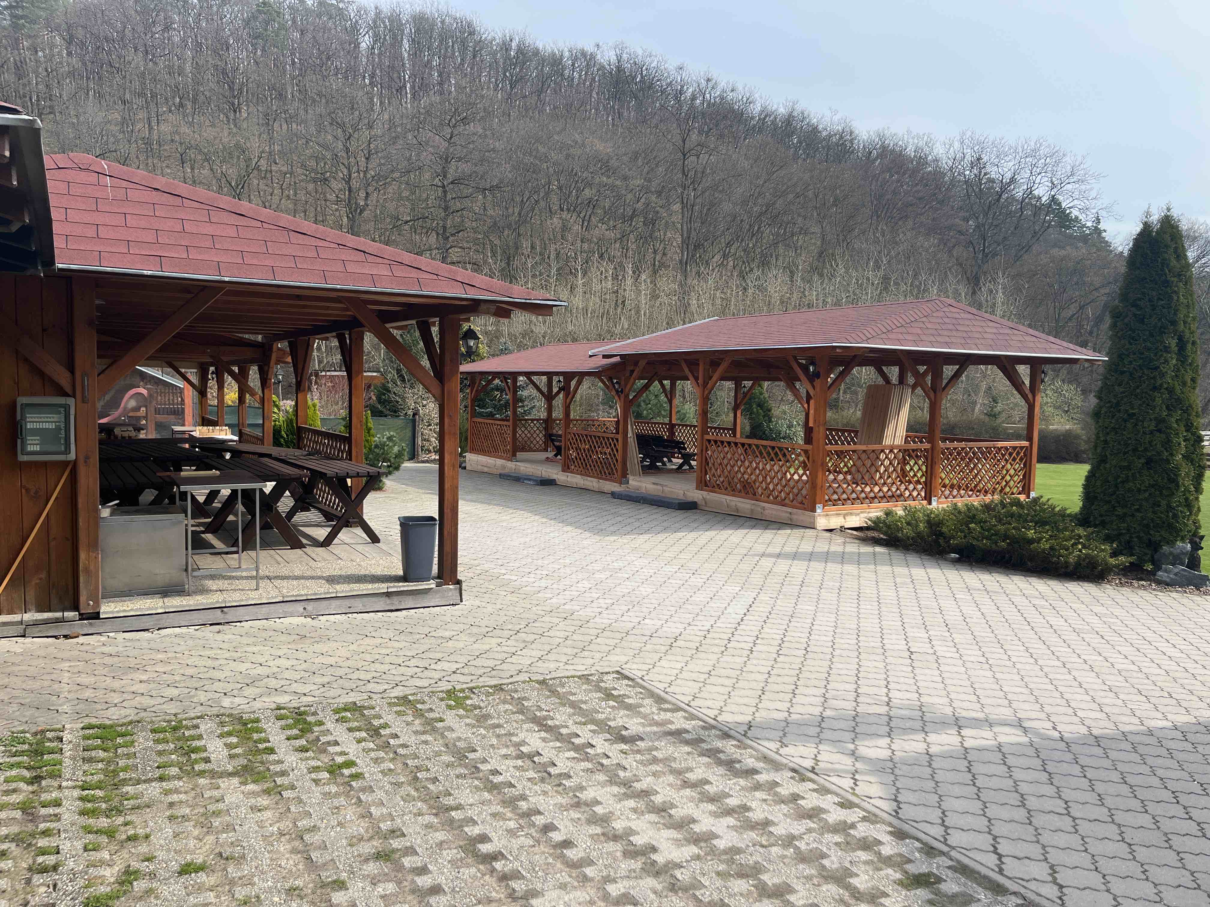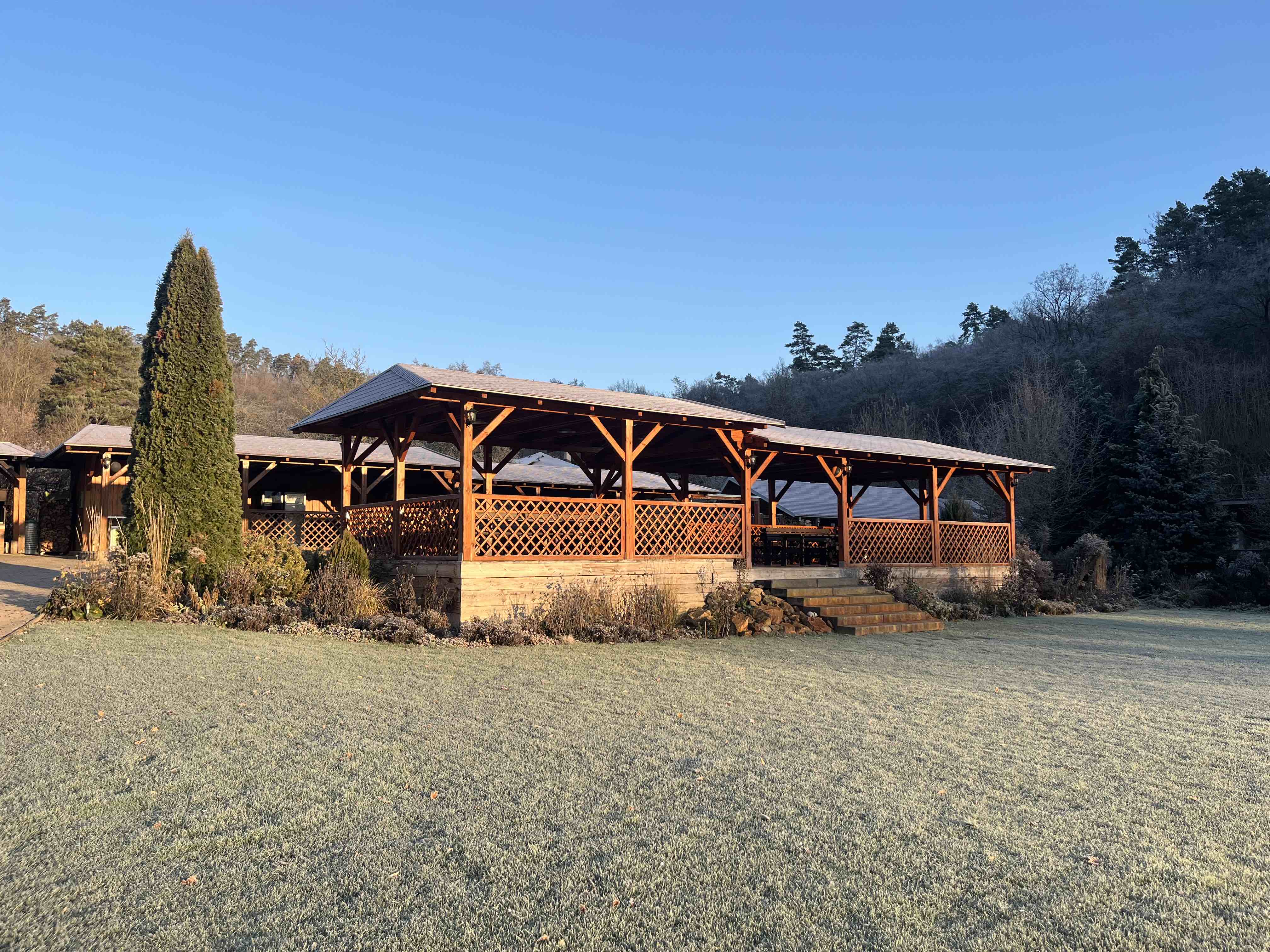 Areál disponuje salonkem až pro 50 osob. Zastřešená pergola má kapacitu 60 osob.
