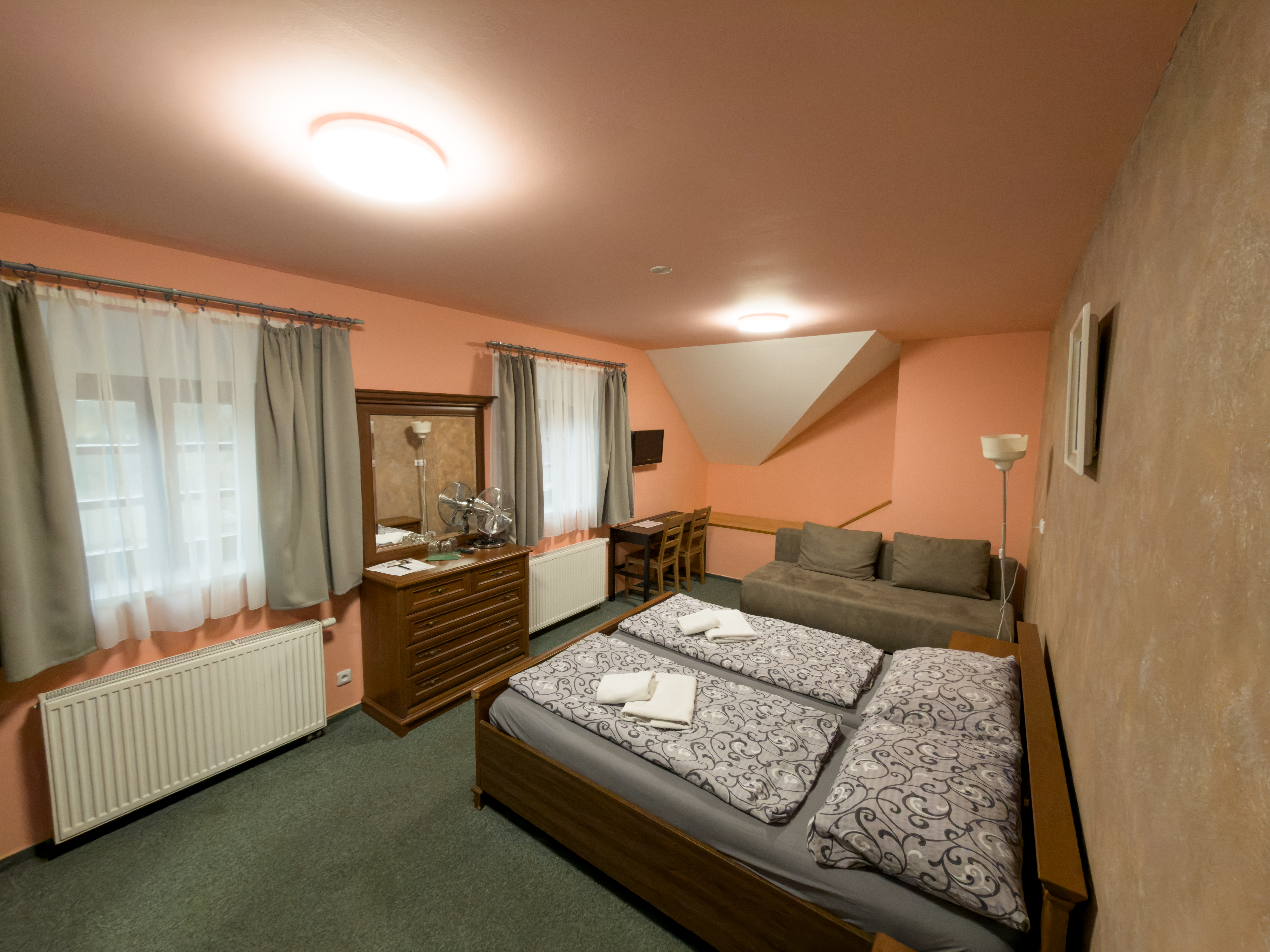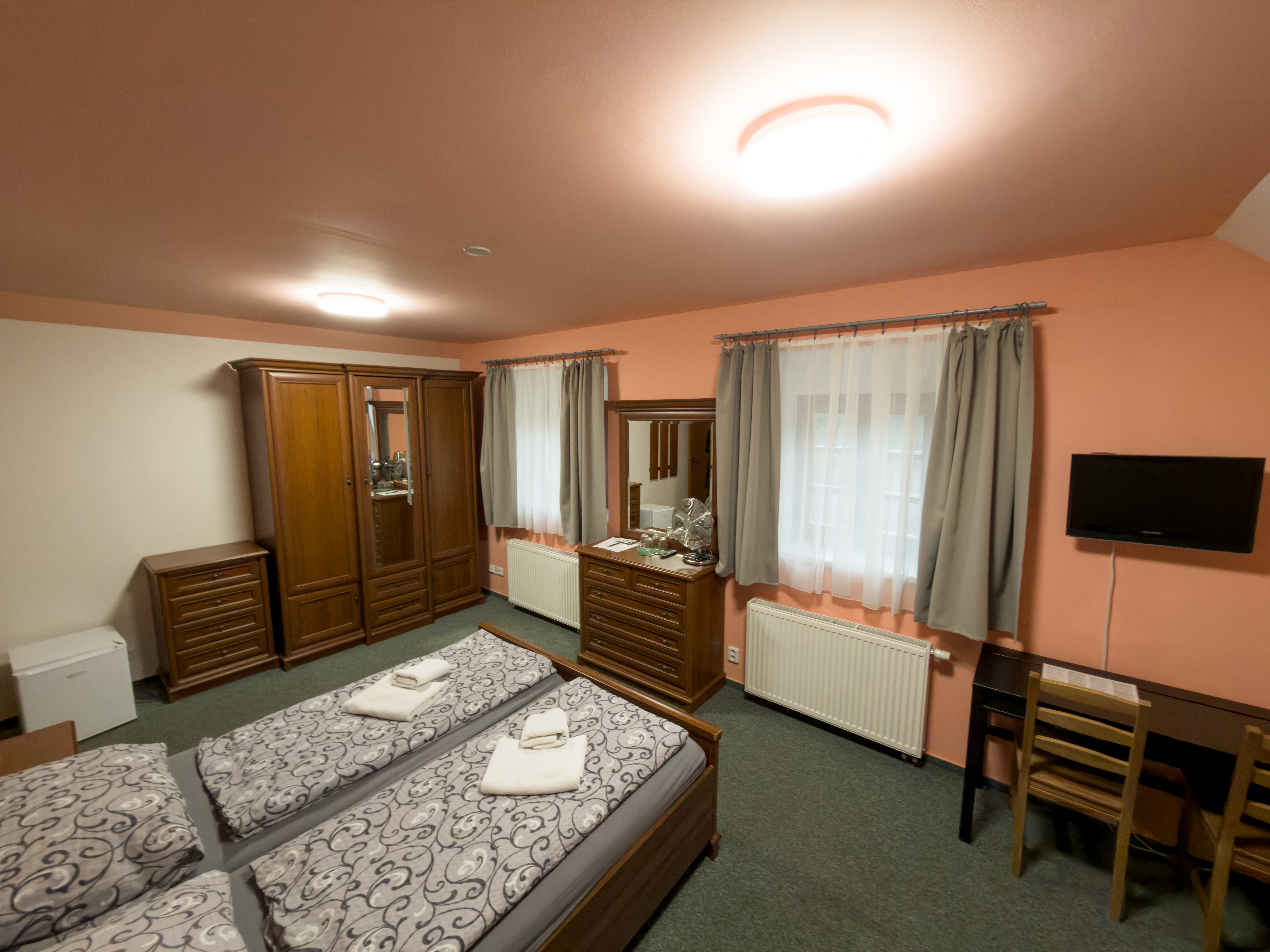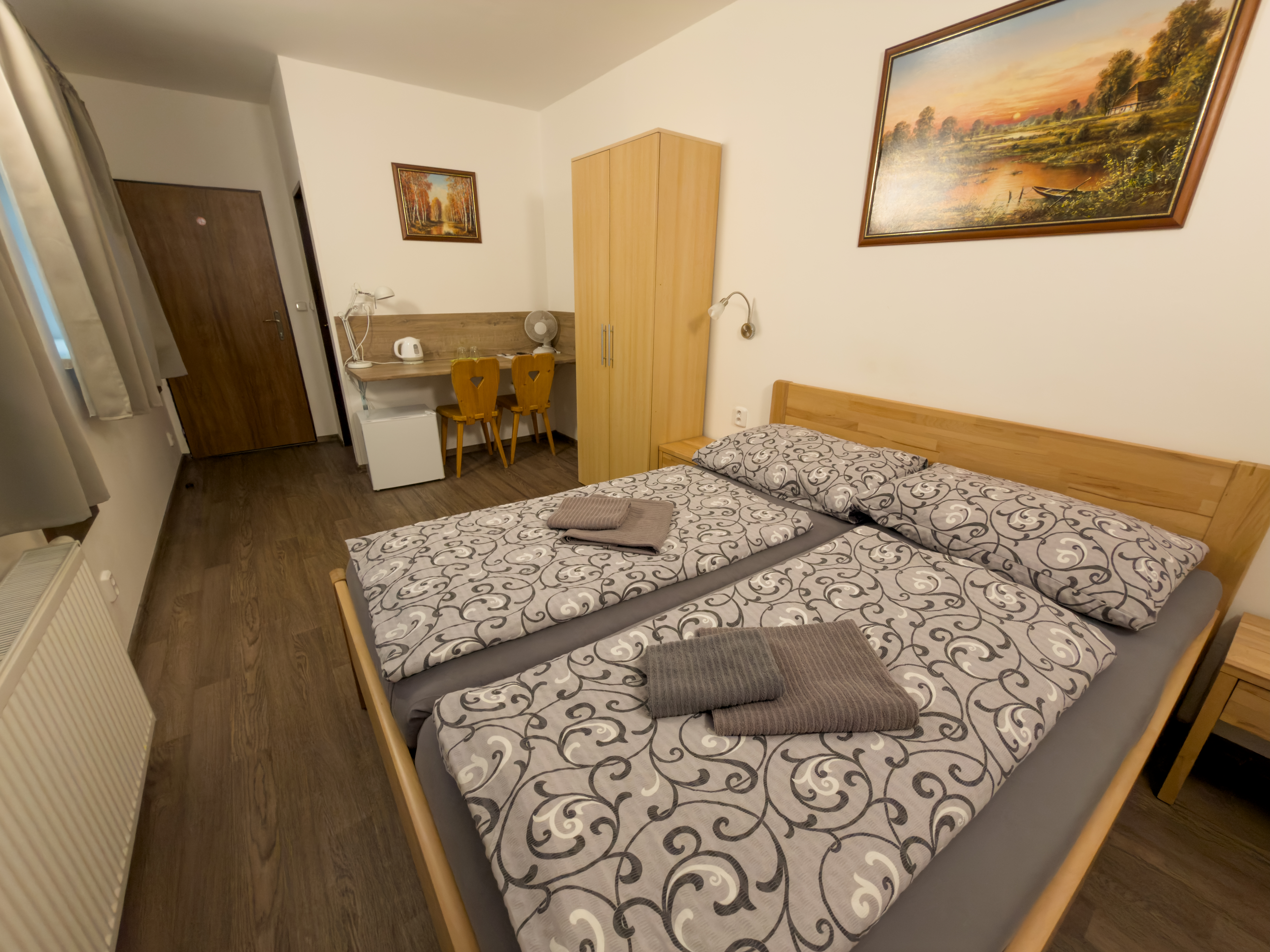 Levné ubytování ve dvoulůžkovém pokoji je skvělou variantou pro všechny, kteří chtějí strávit příjemné dny uprostřed přírody, ale zároveň se snadno dostat do centra města. Pokoje jsou ideální pro svatebčany, účastníky teambuildingu i pro nadšené turisty či bikery.