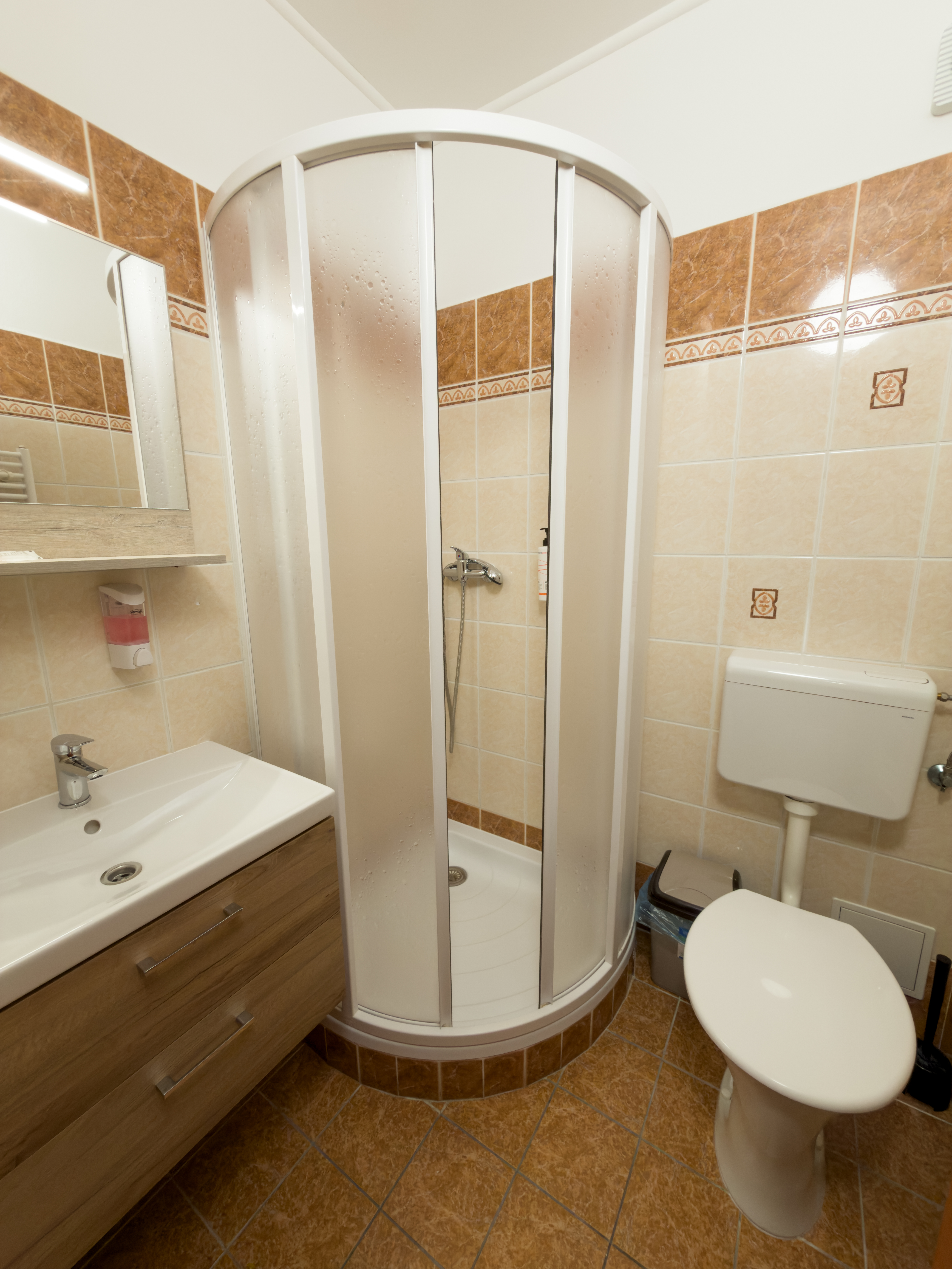 Dostatečné soukromí vám zajistí privátní sociální zařízení, kde najdete sprchový kout, WC a umyvadlo.